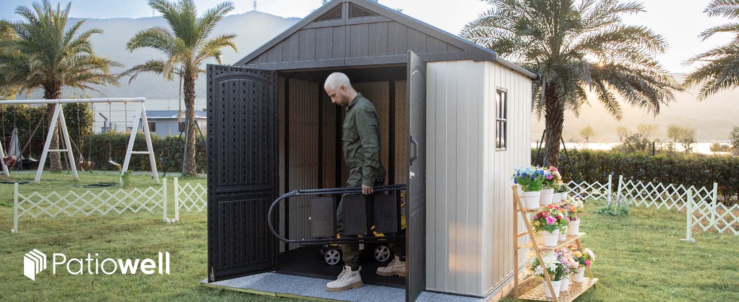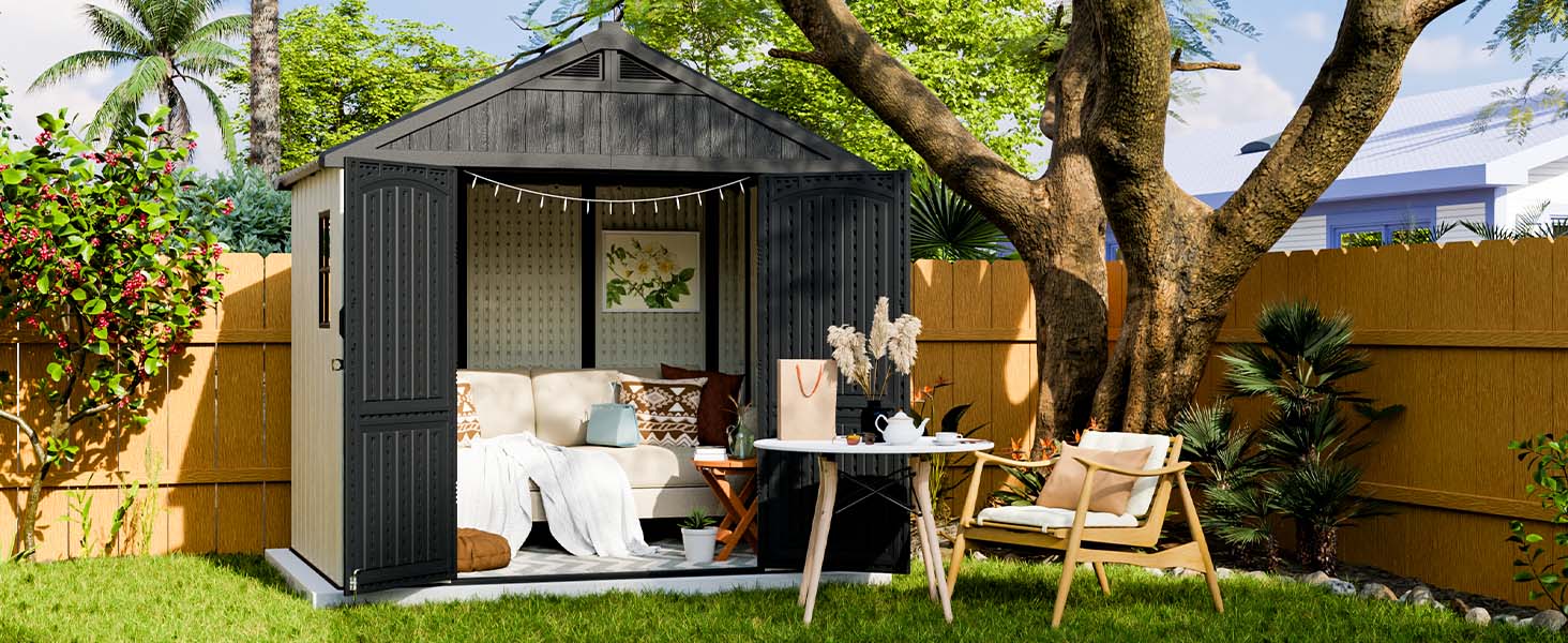 - Plastic Floor Base Provides High Stability: The plastic floor base is sturdy and reliable, providing a safe place to store all of your outdoor tools and equipment. It adds an extra layer of protection against water damage and moisture, ensuring that your belongings remain safe and dry.